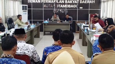 Rapat yang berlangsung di ruang sidang DPRD Kotamobagu pada Senin, (01/12) ini dipimpin langsung oleh Wakil Ketua DPRD Kota Kotamobagu Ahmad Sabir serta dihadiri perwakilan eksekutif terkait.