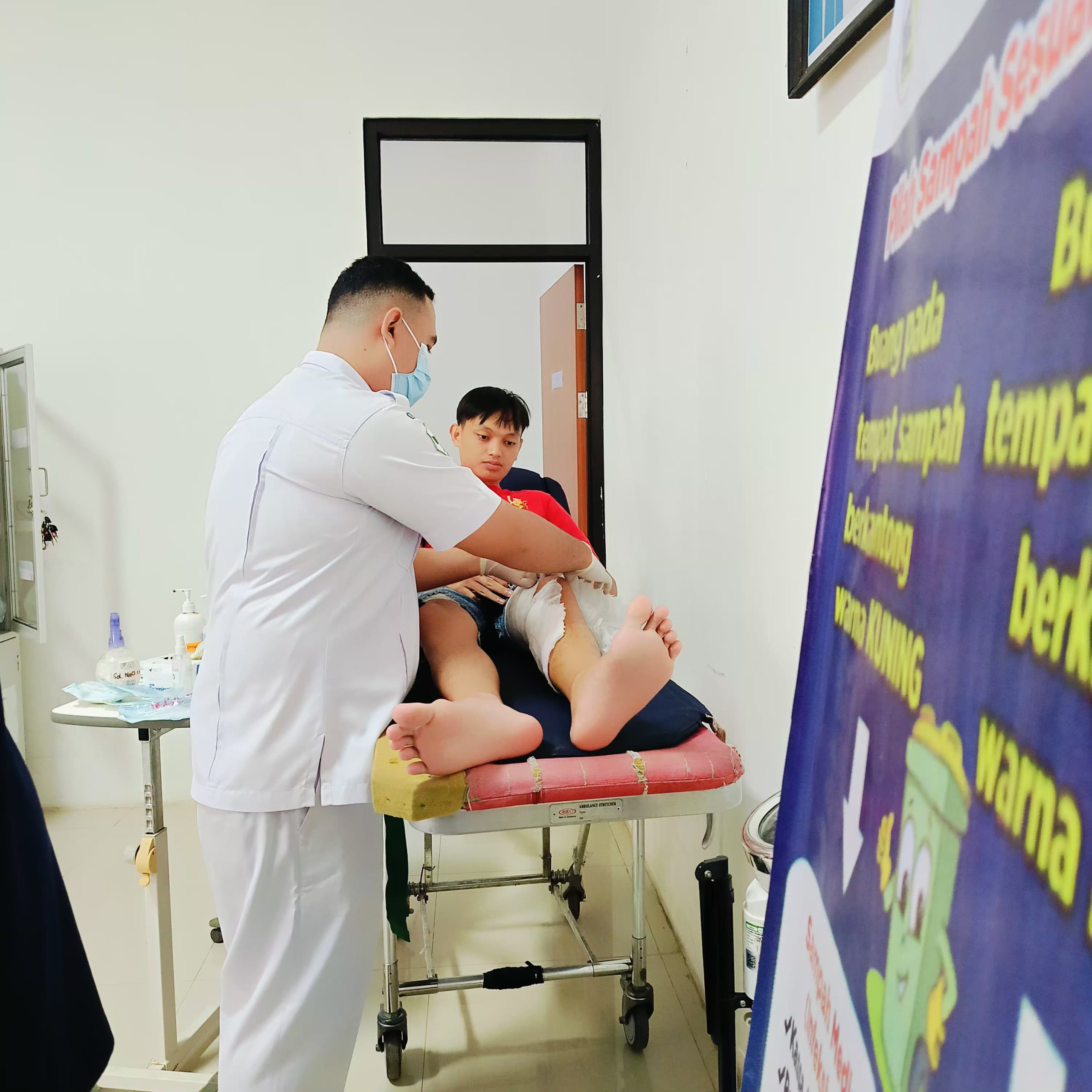 Pasien saat usai dilakukan pemeriksaan dan perawatan di ruangan Poliklinik Bedah