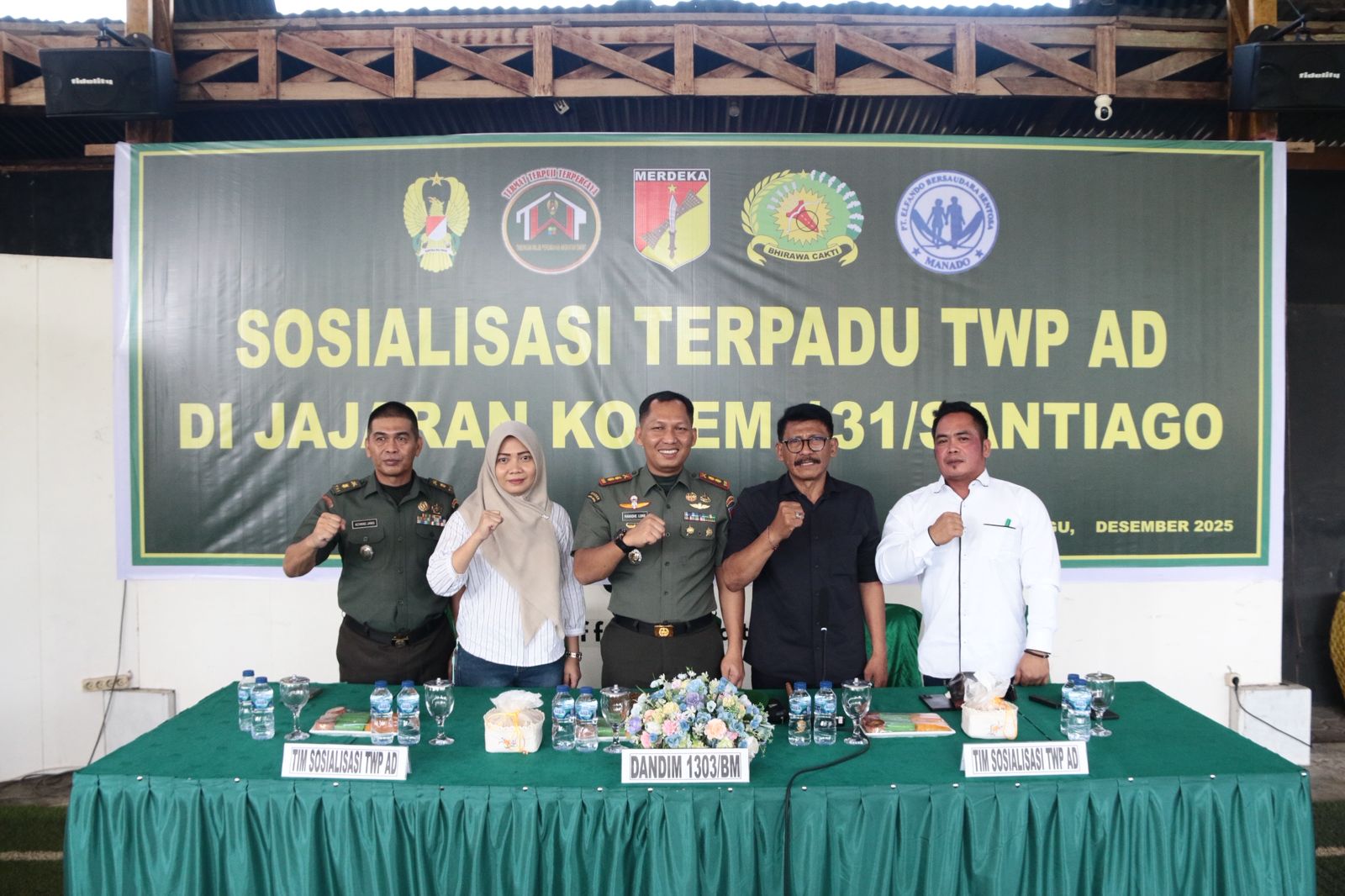 Dalam sambutannya, Dandim 1303/BM Letkol Inf Manashe Lomo menyampaikan bahwa sosialisasi TWP AD sangat penting untuk memberikan pemahaman yang benar kepada prajurit terkait mekanisme dan manfaat program perumahan tersebut.