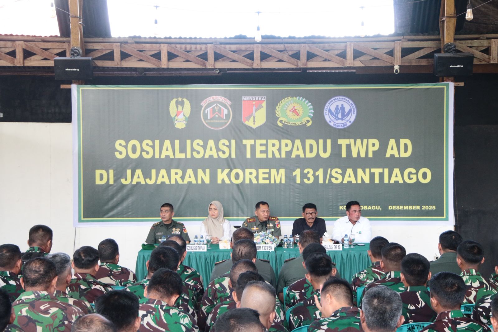 Kontras.co.id – Kodim 1303/Bolaang Mongondow melaksanakan kegiatan Sosialisasi Terpadu Tabungan Wajib Perumahan (TWP) TNI Angkatan Darat kepada prajurit jajaran Korem 131/Santiago yang berada di wilayah Bolmong, Senin, 15 Desember 2025.