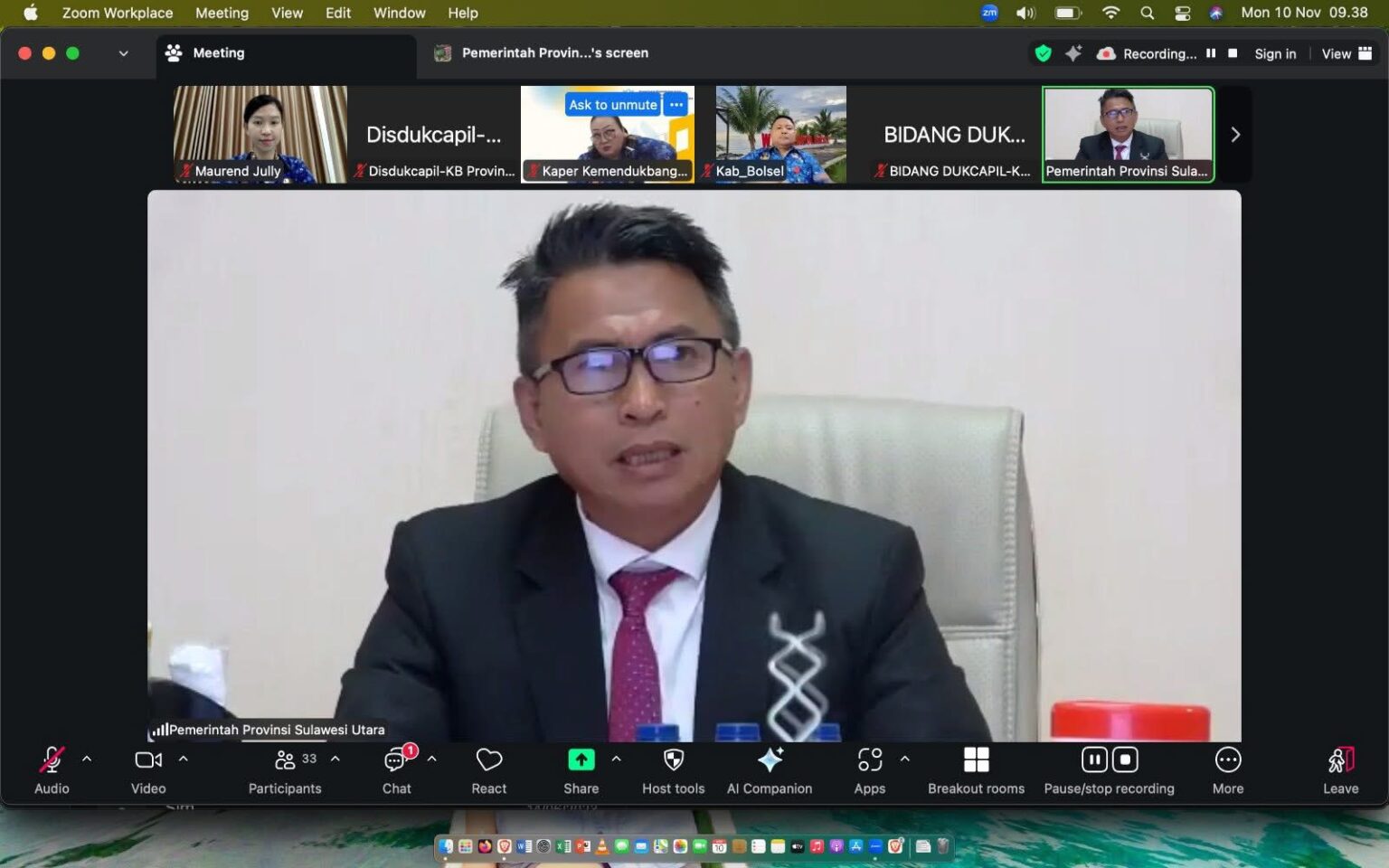 Hal tersebut disampaikan oleh Penjabat (Pj) Sekretaris Daerah Provinsi Sulut, Tahlis Gallang, S.IP, MM, saat membuka kegiatan Rapat Pendampingan Penyusunan Rencana Aksi Peta Jalan Pembangunan Kependudukan Kabupaten/Kota Tahun 2025–2029 yang dilaksanakan secara daring pada Senin, 10 November 2025.