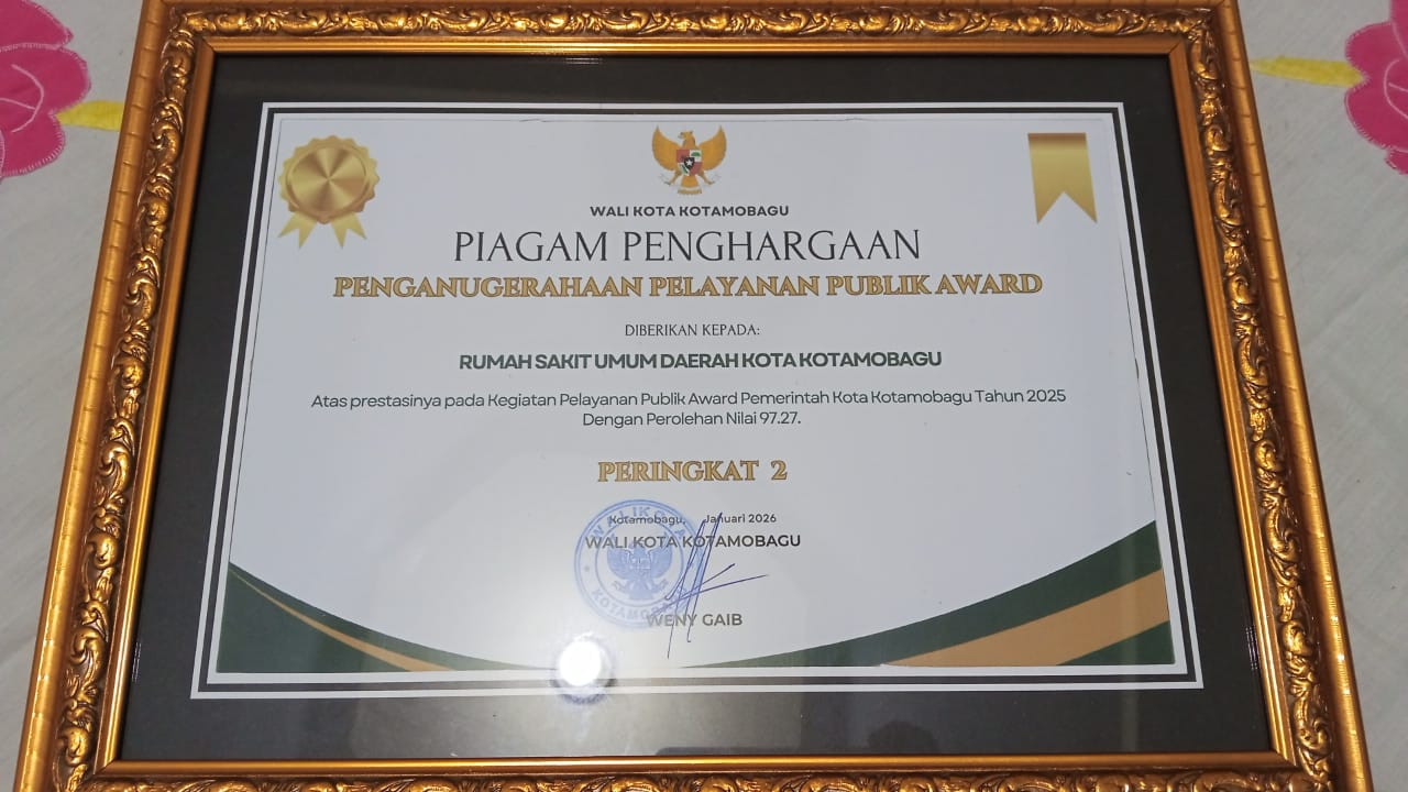 Piagam penghargaan diserahkan langsung oleh Wali Kota Kotamobagu, dr. Weny Gaib, Sp.M, sebagai bentuk apresiasi atas dedikasi dan kerja nyata RSUD dalam menghadirkan pelayanan kesehatan yang profesional, humanis, dan berorientasi pada kepuasan masyarakat. Penghargaan tersebut diterima langsung oleh Direktur RSUD Kota Kotamobagu, dr. Tanty Korompot, M.M.Kes, di tengah suasana perayaan ulang tahun kota yang penuh semangat dan kebanggaan.