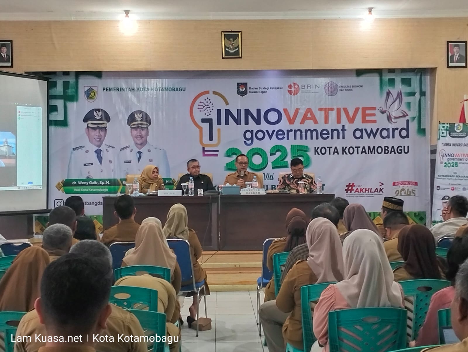 Pembukaan Innovation Government Award Kota Kotamobagu Tahun 2025 dihadiri, secara Langsung dan Daring oleh para Juri Lomba IGA Kota Kotamobagu Tahun 2025, yang terdiri dari Ketua Tim Juri IGA Tahun 2025, Herie Saksono yang juga Peneliti Ahli Utama Pusat Riset Pemerintahan Dalam Negeri, Badan Riset dan Inovasi Nasional (BRIN) Republik Indonesia, Drs. Awan Yanuarko, M.Si., yang juga Analis Kebijakan Ahli Madya Pusat Kebijakan SDM, Teknologi Informasi dan Inovasi, Badan Strategis Kebijakan Dalam Negeri, Kementerian Dalam Negeri Republik Indonesia, dan Agus Tony Poputra yang merupakan Akademisi Fakultas Ekonomi dan Bisnis Fakultas Ekonomi Universitas Sam Ratulangi, para Pimpinan Perangkat Daerah di lingkungan Pemerintah Kota Kotamobagu, Staf Khusus Wali Kota Kotamobagu, Syarif Rahmat Mokoginta serta para Peserta Lomba IGA Tahun 2025.